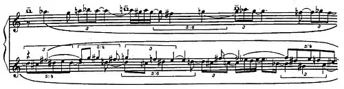 Из особых ритмических групп в музыке классико-романтического периода наиболее распространены триоли (3:2); существуют также дуоли (2:3), реже квартоли (4:3 или 4:6), квинтоли (5:4, 5:6), секстоли, октоли и т. д.[3][5] В музыке XX века в связи с ритмическими экспериментами авангардистов появились многие примеры более изощрённых и нерегулярных ритмических групп. Для указания способа особого ритмического деления композитор в таких случаях использует обыкновенную дробь, которую он помещает в центр квадратной скобки, показывающей границы обособленной группы. Например, дробь 9:8 означает ритмическую фигуру, нотируемую из девяти длительностей, но звучащую в течение времени, равного восьми таким же длительностям.