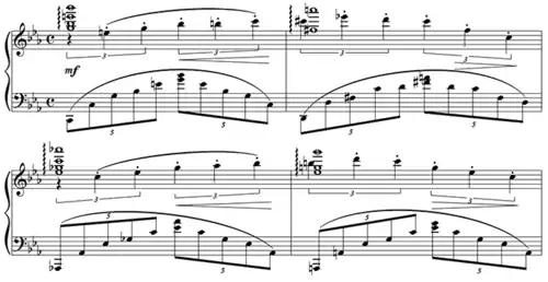 - «Rhythmic groupings of notes that are NOT metric groupings are known as tuplets». Цит. по: Gerou T., Lusk L. Essential dictionary of music notation. [S.l.]: Alfred Publishing Co., 1996, p.155. В 2002 году в «Учебнике фортепиано» Карла Хамфриза (2002) термин tuplet объясняется как «...любой ритм, возникающий при делении доли на равные длительности, количество которых отличается от количества, диктуемого тактовым размером (англ. ...any rhythm that involves dividing the beat into a different number of equal subdivisions from that usually permitted by the time-signature). Цит. по: Humphries C. The piano handbook. San Francisco, CA: Backbeat Books, 2002, p. 266.