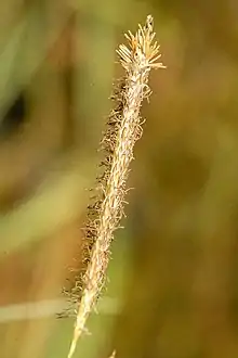 Серо-зелёное растения с длинными ползучими корневищами, дающим утолщённые побеги.