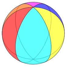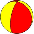 ![]() Правильный треугольный осоэдр, {2,3}, представленный в виде мозаики из трёх двуугольников на сфере. |