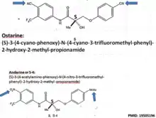 Остарин, более известный в научной среде как энобосарм, — активное вещество вида арил пропионамидов, относящееся к классу селективных модуляторов андрогеновых рецепторов (SARM) и проходящее клинические испытания в компаниях Merck & Co и GTx Inc. для лечения мышечной атрофии и остеопороза[2]. С января 2008 года внесен Всемирным антидопинговым агентством (WADA) в список запрещённых для использования в спорте[3]. С сентября 2016 года включен Правительством РФ в список сильнодействующих и ядовитых веществ для целей ст. 234 УК РФ[4].