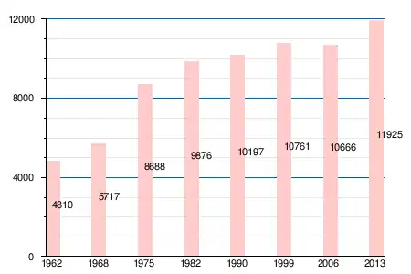 Население коммуны в 2011 году составляло 11 527 человек[6], в 2012 году — 11 682 человека[7], а в 2013-м — 11 925 человек[5].