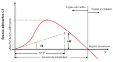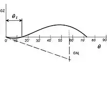 Диаграммой остойчивости называется зависимость восстанавливающего усилия от угла наклонения. Иногда называется диаграммой Рида, в честь инженера, который ввел её в обиход. Для поперечной остойчивости (для которой и была исходно составлена Ридом) координатами будут угол крена Θ и плечо восстанавливающего момента GZ. Можно заменить плечо на сам момент M, от этого вид диаграммы не меняется.