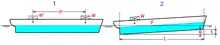 Под воздействием внешнего дифферентующего момента Mдиф судно, плавающее в положении равновесия на ровный киль (ватерлиния ВЛ), наклоняется в продольной плоскости на угол Ψ, (ватерлиния B1Л1). Перемещение центра величины вследствие изменения формы погруженного объёма обеспечивает появление продольного восстанавливающего момента