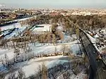 Фактически состоит из трёх островов, разделённых прудами и небольшими каналами | |