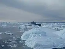 Датский патрульный корабль Hvidbjørnen (F360) на стоянке в Кангилиннгуите