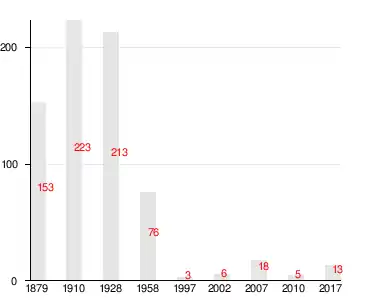 Число жителей по семейным спискам 1879 г.: 19 м. п., 20 ж. п.; по приходским сведениям 1879 г.: 20 м. п., 21 ж. п[4].
