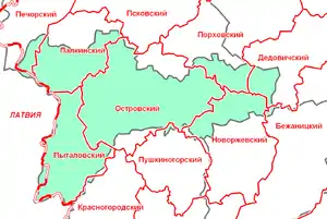 Советская власть в Островском уезде была установлена в январе 1918 года. В 1919 году, согласно договору РСФСР с Латвией, три волости Островского уезда перешли под латвийское управление[4].