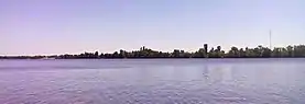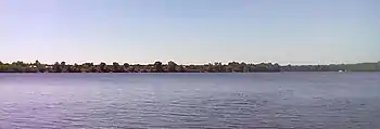 ![]() Южная оконечность острова Водников, слева виден выход из гавани, вид с левого берега Днепра со стороны дачного поселка Нижние Сады-2 | |