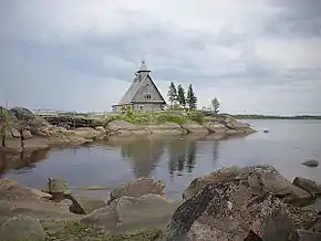 Во время пятого выезда натура нашлась — это было окраина маленького посёлка Рабочеостровск на побережье Белого моря в Карелии. Подошло всё: и пейзаж, который отвечал замыслам сценариста и художника, и естественные декорации. Вокруг — море, в котором разбросаны острова. На суше — старая навигационная башня, полузаброшенные домики[2]. Островом стал полуостров, соединённый с материком небольшим перешейком[4]. Башню преобразили в колокольню, барак без крыши превратили в церковь: надстроили купола, подлатали, внутри «выпилили» стены, чтобы получилось единое пространство[2]. Особое значение для режиссёра имела затопленная деревянная баржа, к которой была привязана вся декорация монастыря. По рассказу режиссёра, баржа, скорее всего, осталась от заключённых: «она старая, с коваными гвоздями — явно двадцатые годы»[3].