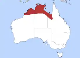 Область распространения простирается от области вокруг Дерби и реки Фицрой на западе через северо-запад и север Австралии до залива Карпентария на северо-западе Квинсленда[2] .