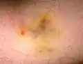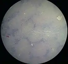 ![]() Мазок костного мозга при остром миелоидном лейкозе. Стрелками обозначены Тельца Ауэра. | |