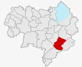 На севере от Остфорштадта находится район Наджанецы, на востоке — район Вурицы, на юго-западе — район Горня-Кина и на западе — район Северовуходны-Вобкруг. В южной части района расположен бывший сельский населённый пункт Тшеляны[2].