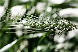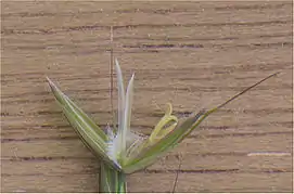 Ости злаков: слева — колосья ячменя обыкновенного (Hordeum vulgare), в центре — колосья ржи посевной (Secale cereale), справа — цветок французского райграса (Arrhenatherum elatius). | ||||||||||