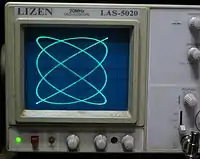 В осциллографах есть режим, при котором на пластины горизонтального отклонения подаётся не пилообразное напряжение развёртки, а произвольный сигнал, подаваемый на специальный вход (вход «Х»). Если подать на входы «X» и «Y» осциллографа сигналы близких частот, то на экране можно увидеть фигуры Лиссажу. Этот метод широко используется для сравнения частот двух источников сигналов и для подстройки одного источника под частоту другого.