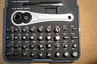 Выпускаются также универсальные отвёртки (разг. - "битодержатели"), которые представляют собой рукоять, к которой возможно присоединить целый набор наконечников или сменных головок под разные виды и размеры шлицев. Крепление осуществляется с помощью магнитного или пружинного держателя (отвёртки-вставки с приводным наружным шестигранником, например, по ГОСТ 30092-93, или вставки сменные к отвертке универсальной с кулачковым поводком по ОСТ 1 52461-01 и так далее), цангового зажима или другим способом. Отвёртки-вставки могут иметь различную длину.