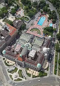 Отель известен термальными купальнями своего спа-комплекса, архитектурно составляющего единое целое с гостиницей, но управляемого отдельной компанией и принадлежащего городским властям. Купальни включают в себя бассейны под крышей и под открытым небом.