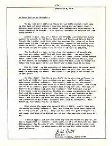 - Gates, Bill (February 10, 1976). «An Open Letter To Hobbyists». Micro-8 Computer User Group Newsletter (Lompoc, CA: Cabrillo Computer Center) 2 (2): 1.