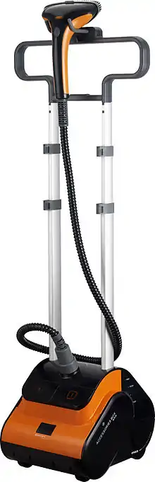 - Паровой утюжок. Устройство, с помощью которого непосредственно осуществляется отпаривание. Имеет несколько отверстий (чаще всего 6), на сопле для выпуска пара. Иногда паровые утюжки снабжены нагревательным элементом, препятствующим возникновению конденсата. Паровой утюжок, изготовленный из металла, позволяет сочетать функции отпаривателя и утюга;