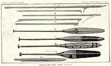 Наконечник обычно стальной, типичный материал древка — дерево. Традиционный отпорный крюк мог иметь бронзовый, а у примитивных народов костяной наконечник. Более новые конструкции предлагают дюралевое или пластиковое древко и стальной или усиленный пластиковый наконечник. Для удобства хранения древко может выполняться раздвижным.