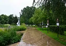 Вдоль главной аллеи парка высажены цветники и размещены стенды с информацией об известных людях, в честь которых названы улицы Отрадного.