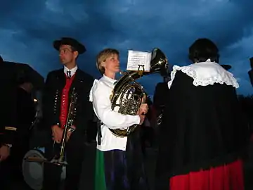 Городской оркестр готовится играть Марсельезу вечером 13 июля