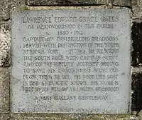 Поблизости умер очень доблестный джентльмен, капитан Л. Э. Отс из Иннискиллингского драгунского полка. В марте 1912, на обратном пути с полюса, он добровольно пошёл на смерть в снежный буран, чтобы попытаться спасти своих товарищей, застигнутых бедой.[24][25]