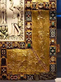 Фрагмент обложки кодекса Эхтернаха, вероятно, из той же мастерской, что и диптих.