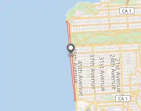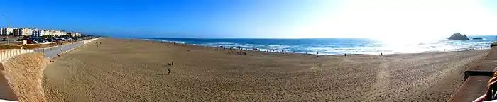 Пляж расположен на берегу Тихого океана, является крайней западной точкой городского парка «Золотые ворота». Длина — около 4,7 километра, максимальная ширина — 180 метров (в северной части, без учёта приливов и отливов). На всём протяжении вдоль пляжа проходит Великое шоссе. Пляж входит в состав рекреационной зоны Золотые ворота[1].
