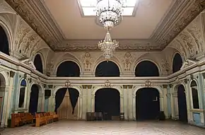 Здание собрания в неоклассическом стиле возведено в 1916, архитектор Д. Числиев[1]. В оформлении интерьеров принял участие известный скульптор Яков Николадзе (кариатиды 3-го этажа).