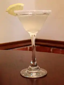 «Дайкири» | исп. Daiquirí | Коктейль-аперитив, представитель семейства алкогольных коктейлей кубинского происхождения, основными компонентами которых являются светлый ром, сок лайма и сахар. Метод приготовления: шейк & стрейн[25][26]. |