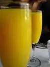 «Мимоза» | англ. Mimosa | Газированный коктейль на основе шампанского и апельсинового сока. Метод приготовления: билд[103][104]. |