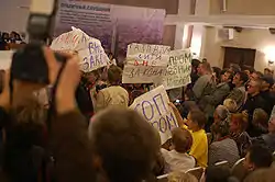 - На слушания по Охта-Центру набрали массовку за деньги (недоступная ссылка). Дата обращения: 1 июля 2008. Архивировано 30 июня 2008 года.