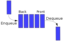 О́чередь — абстрактный тип данных с дисциплиной доступа к элементам «первый пришёл — первый вышел» (FIFO, англ. first in, first out). Добавление элемента (принято обозначать словом enqueue — поставить в очередь) возможно лишь в конец очереди, выборка — только из начала очереди (что принято называть словом dequeue — убрать из очереди), при этом выбранный элемент из очереди удаляется.