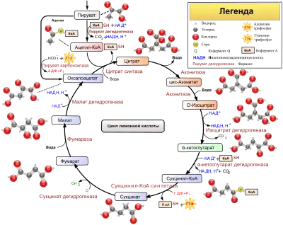 Интересный фермент цикла трикарбоновых кислот, открытый Кауфманом в шпинате, катализирует синтез ATF из ADF, Pi и сукцинила CoA. Сукцинил CoA был затем деацетилирован в сукцинат и CoA[20][21]. Фермент был обозначен как фосфорилирующий фермент или P-фермент, а затем сукциниктиокеназа. P-фермент участвует в субстраном фосфорилировании, следующем за декарбоксилированем кетоглютарата в цикле Кребса. Этот фермент убедил Очоа вернуться к изучению окислительного фосфорилирования.