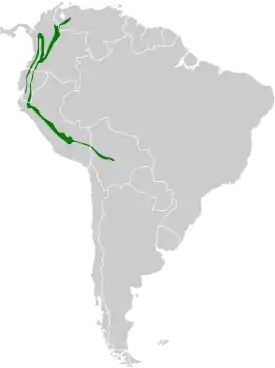 Ареал вида охватывает территорию западной Венесуэлы, Колумбии, Эквадора, Перу и Боливии. Колибри населяет влажные андские леса на высоте от 1800 до 3000 метров над уровнем моря.