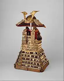 Сам доспех имел весьма сложное строение и состоял из нескольких частей, основной из которых была кираса (до). Она имела сложную конструкцию, состоящую из пластинок: четыре горизонтальных ряда прикрывали живот воина. Эти пластины назывались накагава и соединялись между собой с помощью шёлковых шнуров, причём вся конструкция для прочности крепилась к пластине из металла цубо-ита, образуя достаточно надёжную защиту живота воина.