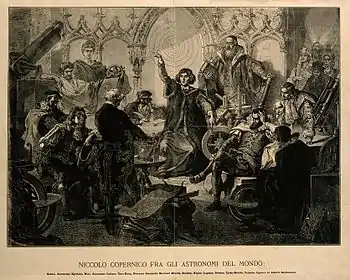 Католическая церковь, занятая борьбой с Реформацией, первоначально снисходительно отнеслась к новой астрономии, тем более что вожди протестантов (Мартин Лютер, Меланхтон) отзывались о ней резко враждебно[33]. Эта снисходительность была связана и с тем, что для предстоящей реформы календаря были полезны наблюдения Солнца и Луны, содержащиеся в книге Коперника[34]. Папа Климент VII в 1533 году благожелательно прослушал лекцию о гелиоцентрическом подходе, подготовленную учёным-ориенталистом Иоганном Альбертом Видманштадтом[35]. Однако несколько епископов выступили с яростной критикой гелиоцентризма как опасной богопротивной ереси[36].
