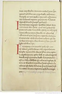 ![]() Исидор Севильский «О знаменитых мужах», 31 и 32 глава книги. Рукопись XII века. Национальная библиотека Франции. | |