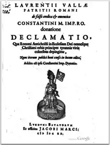 - Lorenzo Valla. «De falso credita et ementita Constantini donatione declamatio». 1620