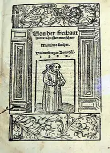 О свободе христианина (лат. De libertate christiana) — трактат Мартина Лютера, опубликованный в ноябре 1520 года. В этом трактате природа человека рассматривается как двухчастная: духовная (нем. geistlicher) и физическая (нем. leiblicher). Этой дихотомии соответствует разделение внутренний/внешний человек. Отсюда никакие внешние обстоятельства (нем. äußerliches Ding) не могут причинить вред душе человека. Равным образом, как богатство не вредит душе, так и аскеза её не спасает. Единственным достаточным условием спасения является вера (Sola fide) - главная сила и свобода христианина. При этом никакие дела не способны оправдать человека. Учение об оправдании делами Лютер называет левиафаном.