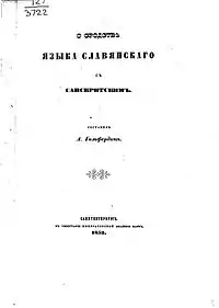 - Гильфердинг А. Ф. О сродстве языка славянского с санскритским. — СПб.: Тип. Императорской Академии Наук, 1853.