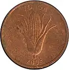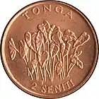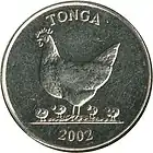1967, 1968—1974, 1975—1980, 1981—2005 | с 1967: год чеканки, портрет и имя королевы Салоте Тупоу III, с 1968: год чеканки, портрет короля Тауфа’ахау Тупоу IV в профиль. С 1975: в центре початок кукурузы, внизу год чеканки, вверху слово TONGA. | с 1967 гигантская черепаха и номинал. В 1975—1980 в центре свинья, вверху надпись «Fakalahi meakai» («производить больше продуктов питания»), внизу номинал. В 1981—2005 вместо свиньи культурное растение. | |
