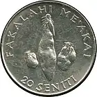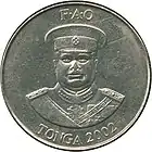 | 1977 | год чеканки, слово TONGA, портрет короля Тауфа’ахау Тупоу IV в военной форме, лицом вперед, надпись F.A.O. | внизу номинал, вверху надпись FAKALAHI ME’AKAI («производить больше продуктов питания»), в центре изображение девяти основных источников продовольствия (корова, пальма, курица, рыба, свинья, пчела и др.) | ||
