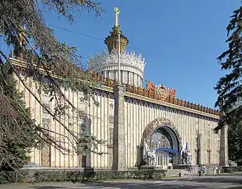 - Реставрация входной арки ВДНХ и павильона "Украина" завершится к лету 2018 года. ТАСС (25 июля 2017). Дата обращения: 27 февраля 2018.