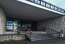 Павильон в духе советского модернизма построен в 1971 году по проекту архитекторов Бориса Виленского, В. Богданова, Акопова, В. И. Жука, Пумпянской, а также при участии инженеров И. Левитес и А. М. Бройда[* 1][2]. Павильон стал последней работой Бориса Виленского и отсылает к кафе-стекляшкам, созданным совместно с Игорем Виноградским для парка Сокольники. Стеклянный параллелепипед здания расчерчен в клетку и прикрыт покрытым ракушечником изогнутым фасадом.