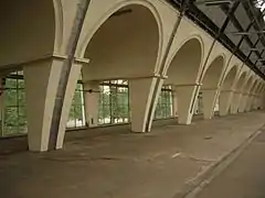 Павильон был построен в 1938—1939 годах по проекту архитекторов Виктора Андреева, Ивана Таранова и Надежды Быковой. Изначально павильон был построен в виде эллинга, или дебаркадера, которому было придано сходство с дебаркадером Киевского вокзала в Москве. Конструкция была украшена стальными стеклянными аркадами и двухъярусными галереями-лестницами. Этот приём сохранял первоначальный план площади Механизации, спроектированной Вячеславом Олтаржевским, и создавал эффект арки, перекинутой через Большую аллею и не закрывающей перспективы до самой границы выставки[4][2].