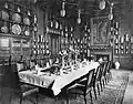 Джекилл разработал концепцию столовой в виде Porsellanzimmer (фарфоровая комната). Он выстроил сложную решётчатую структуру из резных шпинделевых полок из грецкого ореха, на которых была размещена коллекция китайского синего и белого фарфора Лейланда, в основном эпохи Канси династии Цин[4][5]. Стены он покрыл кожаными обоями XVI века, привезенными в Англию как часть приданого Екатерины Арагонской. На них были изображены еë геральдические символы: открытый гранат и ряд красных и тюдоровских роз, как символ союза с Генрихом VIII. Обои несколько веков висели на стенах дома в стиле Тюдоров в Норфолке, прежде чем Лейланд купил их за 1000 фунтов[6][5][4].