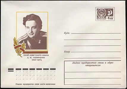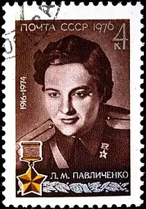 - В 1976 году, в память 60-летия со дня рождения Л. М. Павличенко в СССР вышла почтовая марка с её изображением.