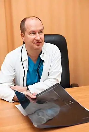 Об уникальной операции по пересадке родственной почки и формированию искусственного мочевого пузыря: «Больные в нашей клинике получают помощь по мировым стандартам. Я могу назвать эту операцию топовой, она доказывает высокий уровень медицины. Оснащение оборудованием, подготовка врачей — сейчас все находится на отличном уровне. …В спасении жизни юной пациентки принимало участие целое содружество разных врачей — трансплантологи, иммунологи, урологи, сосудистые хирурги и другие».